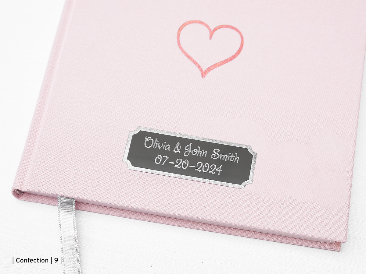 Elevate your wedding day with our charming Pink Wedding Guest Book, adorned with a heart on the front cover. This delightful pink hue symbolizes love and tenderness, creating an enchanting ambiance for your guests to share their well wishes and heartfelt messages.